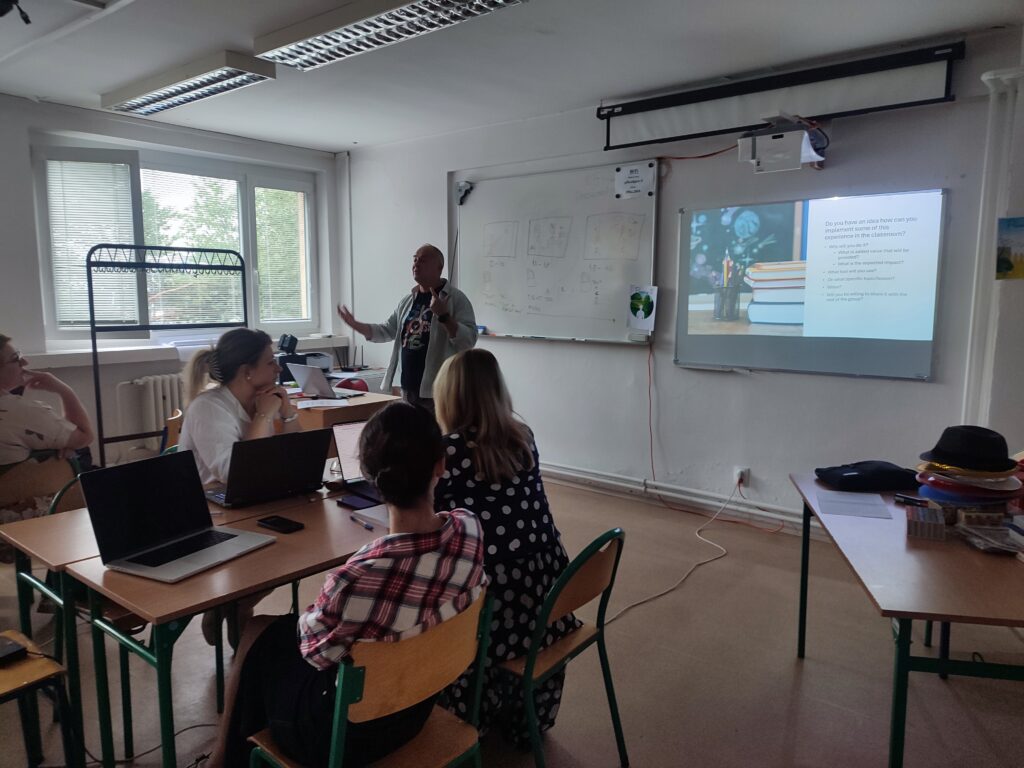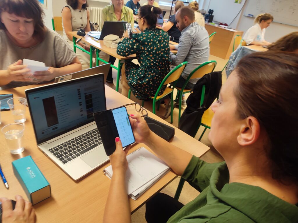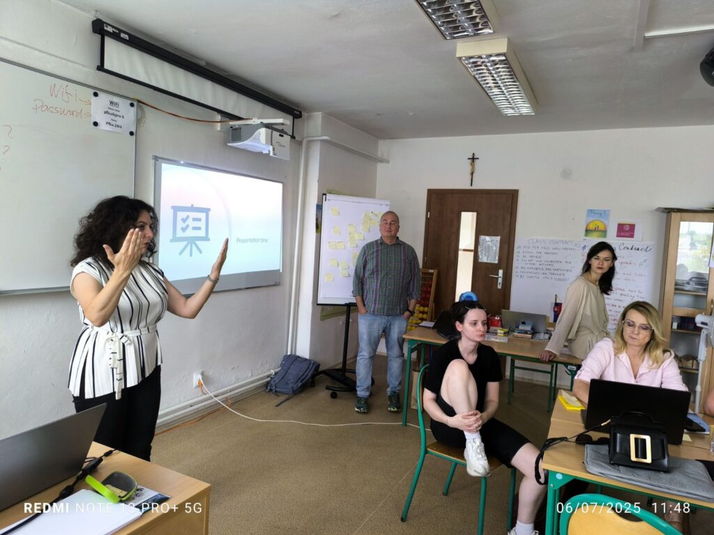 On the second day, the focus shifted to technology-supported formative assessment and the role of artificial intelligence in the classroom. Participants were introduced to gamified assessment tools such as Kahoot and Quizizz and engaged in a hands-on activity to design their own interactive quizzes and formative assessment materials. In the second part of the session, participants explored the potential of AI in education, testing tools like ChatGPT, AI-based chatbots, and image generators. They considered the practical classroom applications of AI, including generating prompts, visual content, and dialogue-based learning experiences. A key discussion centered on the ethical considerations of AI use in education and how to responsibly introduce these tools to students. Through group activities, educators shared strategies for fostering critical thinking and digital responsibility when using AI with learners.