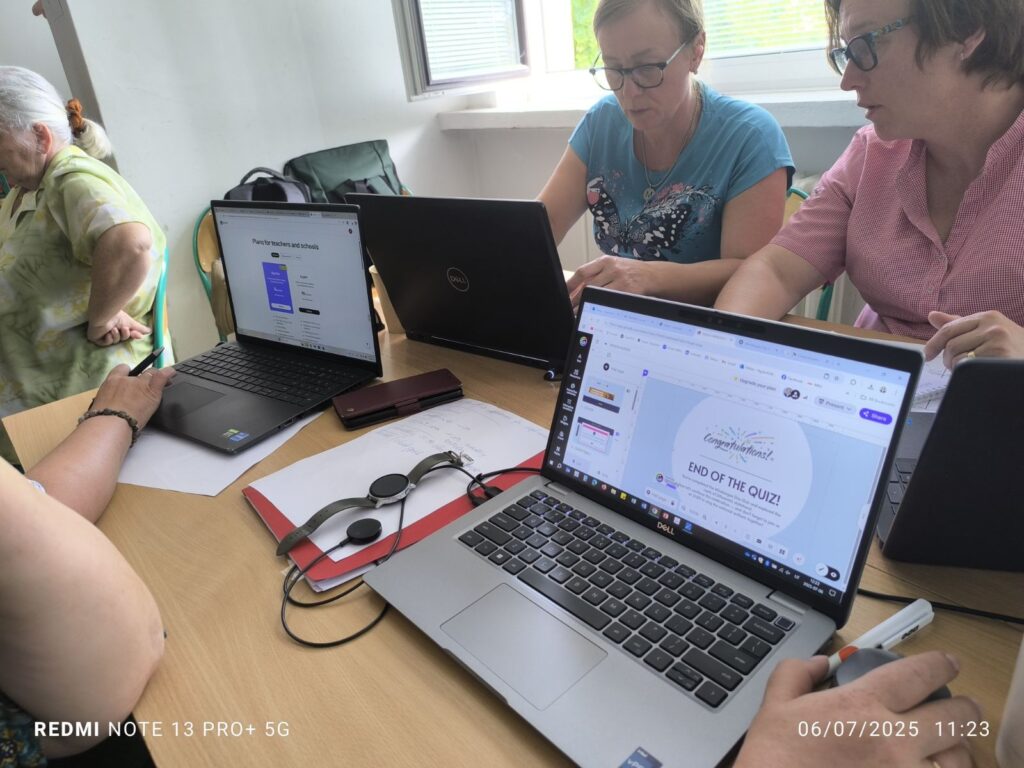 The onsite component of the training, held over three consecutive days (from 6th until 8th of July) in Ruzomberok, Slovakia, offered a dynamic and highly interactive environment for exploring the pedagogical use of digital tools. Each day focused on a specific theme and included a structured blend of short presentations, hands-on activities, group work, tool demonstrations, and reflective discussions.
